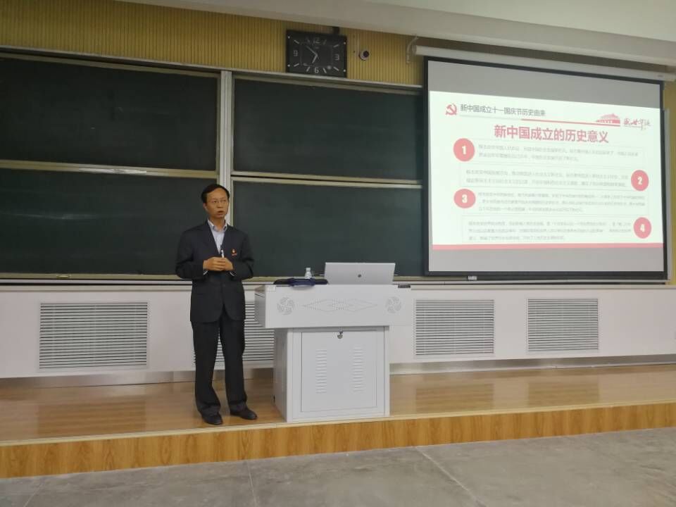 9月29日晚19:30,信誉最好的十大体育平台在兰工坪校区崇理楼502举行庆祝中华人民共和国成立70周年暨“不忘初心,牢记使命”主题教育党课,公司党委书记李元东作了题为“庆祝中华人民共和国成立70周年,不忘初心牢记使命”的党课报告。学院各党支部书记、辅导员老师及全体员工党员参加。