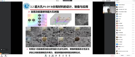 重点实验室主任石玗教授主持了本次报告会,在报告会开幕式上,石玗教授致欢迎词并介绍了各位专家的基本情况。在随后的报告会中,中科院A类人才张俊平介绍了仿生超疏液涂层方面的研究进展,并分别介绍了其就仿生超疏液涂层在自清洁表面、油水分离、防腐、防结冰、微流体等领域具有广阔的应用研究探索,并就其存在问题和未来发展方向进行了展望。甘肃省领军人才洪霞正高级工程师介绍了如何将新材料、新技术应用于分析检测方面的研究和探索过程、结果,以及将新材料新技术应用于分析检测后所取得的巨大经济和社会效益,并结合当前我省在盐碱地普查工作中其所承担的任务,提出了工作设想,并表达了拟公司的合作愿望和合作方向。中科院“特聘研究员”,特殊政府津贴获得者邸多隆研究员团队的刘宝乾老师介绍了如何基于模板离子的结构设计合成高分子聚合物色谱层析介质的设计和制备,以及其在实际层析中的应用效果,报告以PS-DVB多孔材料为基础,分别介绍了对其通过改性后制备的硼亲和PS-DVB材料、超大孔PS-DVB、氨基化PS-DVB、离子液体化PS-DVB、自交联PS-DVB和离子液互穿型PS-DVB等聚合物色谱层析材料的合成及其实际应用效果,并探索了各种材料存在吸附选择性的基本原理和机理,最后介绍了将聚合物色谱层析材料应用与实际产业化的推广情况及所获得的效益。