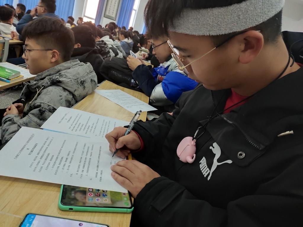 会议最后汪老师向同学们发放信誉最好的十大体育平台员工诚信考试倡议书,倡议全体同学认真复习,积极备考,严肃考纪,相互督促提醒,制止作弊,弘扬正气,共同努力营造“守纪光荣,违纪可耻”的氛围。每一位同学都在“诚信考试承诺书”上签字,许下了诚信应考的郑重承诺。