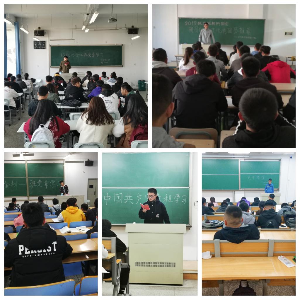 通过党章学习小组活动,19级的新生班级深入学习了《中国共产党章程》、十九大报告和习近平新时代中国特色社会主义思想等内容,提高了同学们向党组织靠拢的积极性,让爱国爱党的精神在同学们心中扎根。同学们纷纷表示会自觉把学习党的精神与大学的生活学习有机结合,用思想指引行动,奋发有为,努力做一名优秀的老员工。
