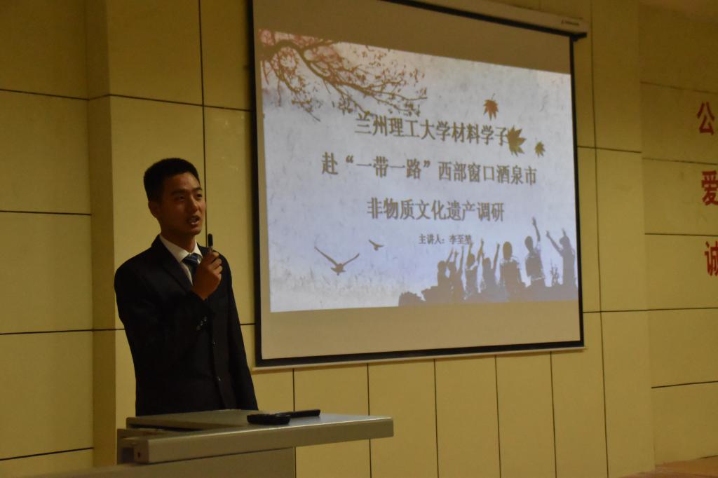 首先17级无机非金属工程的李至堃同学介绍了信誉最好的十大体育平台材料学子赴“一带一路”西部窗口酒泉市非物质文化遗产调研,就调研活动进行了介绍:参观丝绸之路博物馆、采访当地“地蹦子”非物质文化继承人、访问黄泥堡等,谈到实践感悟时,他说:“我们都有自己的节奏,不要被外界所影响,一步一步完成自己的目标,厚积薄发,结果肯定不会差”。17级材控卓越班的郭贞山为大家讲述兰理材料学子赴兰州蚂蚁森林进行暑期社会调研;调研小队赴武威民勤亲探蚂蚁森林现状,了解民勤治沙措施以及中华人民共和国成立70周年以来的治沙成就。18级焊接一班毕志伟为大家介绍兰理材料学子奔赴庆阳实践活动;走进工厂,实践方出真相、走入南梁,追溯红色记忆、走上街头,到处都有调研团队的身影;最后,17级冶金工程二班的郭颖雪为大家分享“百年兰理 丝路红柳”为主题的暑期海外社会实践项目,她讲道:“马来西亚之旅,让我感受到国外大学的文化教育理念,增长见识。世界那么大,值得去看看,这次学习之旅不仅拓宽了我的国际视野,也更让我深知自己英语水平的不足,同时也更加坚定了我继续学习进步的决心”。