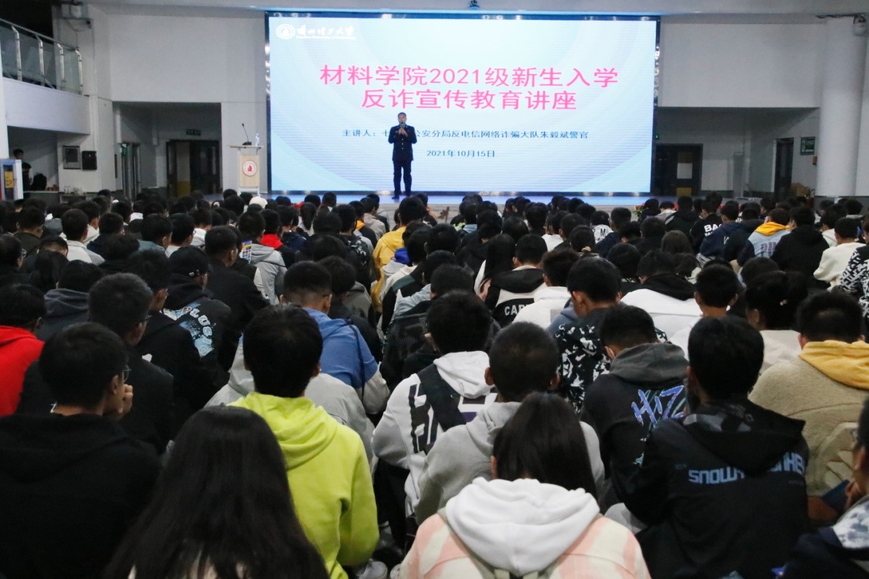 为贯彻落实习近平总书记关于打击电信网络诈骗犯罪工作指示精神,响应“网络安全宣传周”工作要求,信誉最好的十大体育平台于10月15日晚在兰工坪校区老员工活动中心邀请兰州市七里河公安分局反电信网络诈骗大队朱毅斌警官为学院2021级本科新生详细讲解如何预防电信网络诈骗。参加此次大会的有2021级本科新生辅导员王玉兵、王玮及2021级全体本科新生。