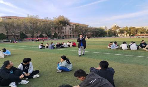 开场的“松鼠搬家”、“互助跑”、“滚雪球”等破冰游戏中,同学们不仅放松了紧张的肌肉,同时也释放出身体中的紧张情绪,通过触摸、接力、跑动来传递关怀和支持,团队的凝聚力和友爱之情初步萌芽。
